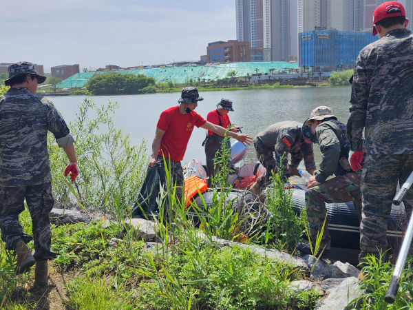 [충청뉴스 박동혁 기자] 천안시재난구조단연합회(연합회)가 지난 12일 천안시 서북구 성성호수공원에서 수난구조훈련 및 수중정화활동을 펼쳤다.