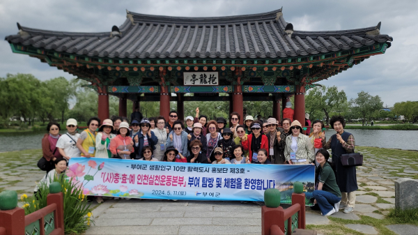 [충청뉴스 조홍기 기자] 인천 충효예 실천운동본부 회원 40명은 지난 11일 부여군을 방문하여 생활인구 10만 목표 달성과 지역 경제 활성화를 위한 홍보 프로젝트에 참여하였다.