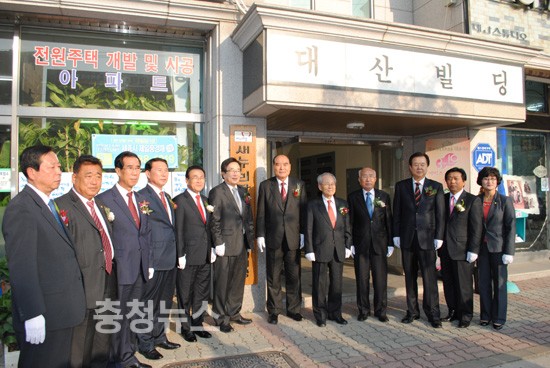 ▲ 세종특별자치시당 창당대회식전 좌-김고성 위원장,김용환 고문 뒷쪽 황우여 대표,서병수 사무총장, 유한식 시장과 강용수 시의원 등이 기념 촬영을 했다.