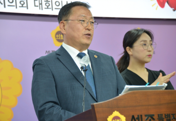 의정브리핑 하는 유인호 세종시의회 의회운영위원장