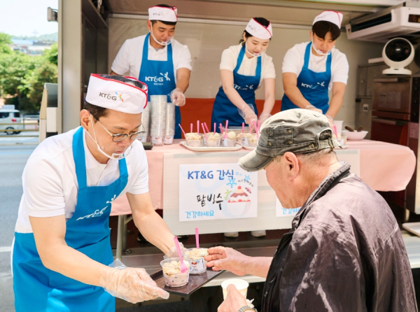 ‘사랑의 급식 나눔’은 KT&G가 취약계층 삶의 질 향상을 위해 2018년부터 이어온 무료급식 지원 활동이다. 이날 KT&G 방경만 사장과 임직원 20여 명은 밥과 반찬을 직접 배식하고 손수 만든 팥빙수를 전달하며, 독거노인·노숙인 등 도움이 필요한 이웃들에게 나눔의 손길을 전했다.