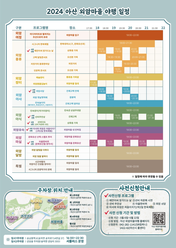 자세한 내용은 아산 외암마을 야행 누리집과 아산시청 누리집 등을 통해 확인할 수 있다.