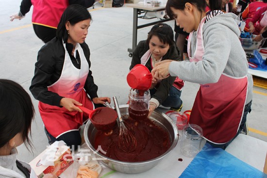충남농협(본부장 임승한)과 농가주부모임 충남연합회(회장 김화중)는 지난 30일 덕산농협 육묘장과 31일 광석농협 유통센터에서 다문화가정과 함께하는 사랑의 고추장 담그기를 실시했다.