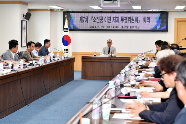 22일 중구청 중회의실에서 진행된 '제7차 소진공 이전 저지 투쟁위원회' 회의 모습