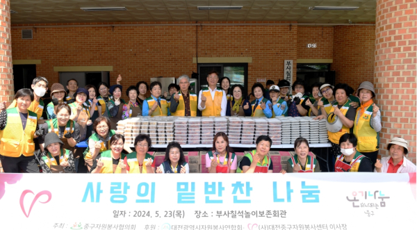 [충청뉴스 박영환 기자] 대전 중구(구청장 김제선)는 23일 중구 부사동 소재 부사칠석놀이보존회관에서 중구 자원봉사협의회(회장 윤덕순) 주관으로 사랑의 밑반찬 나눔 행사를 진행했다고 밝혔다.
