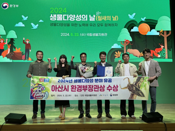 [충청뉴스 박동혁 기자] 충남 아산시는 지난 22일 인천 국립생물자원관에서 열린 환경부 주최 ‘2024 생물다양성의 날(철새의 날) 기념행사’에서 ‘생물다양성 분야 유공’ 환경부 장관 표창을 받았다고 밝혔다.