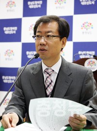 ▲ 기자실에서 2013년 예산안 설명하는 임만규 기획관리실장