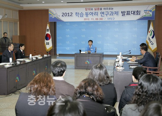 대전광역시 대덕구(구청장 정용기)는 지난 6일 7개 학습동아리 회원 등 100여명이 참석한 가운데 '2012 학습동아리 연구과제 발표대회'를 개최했다.
