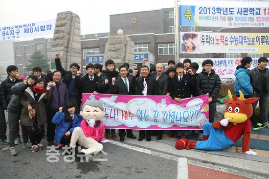 이기원 계룡시장이 8일 오전 2013학년도 대학수학능력시험이 치러지는 계룡고와 용남고를 방문해 수험생과 가족들을 격려했다.