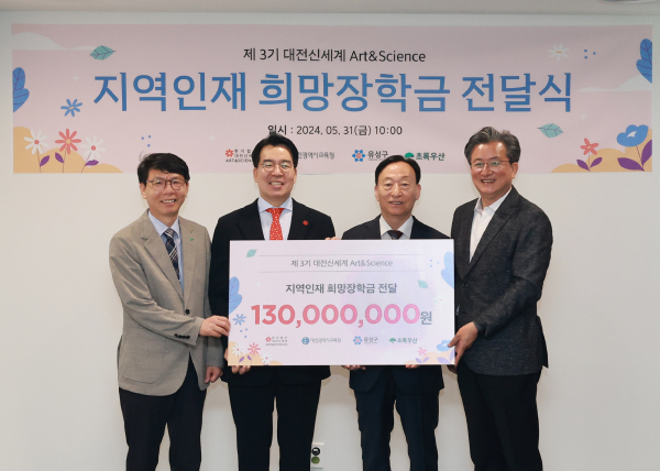 [충청뉴스 박영환 기자] 대전 유성구(구청장 정용래)는 지난 31일 ㈜대전신세계(대표이사 윤석희)로부터 지역인재 희망장학금 3천만 원을 전달받았다고 전했다.