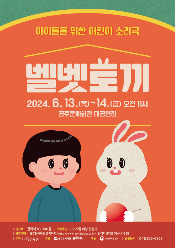 [충청뉴스 공주 = 조홍기 기자] 오는 6월 13일(목) 어린이소리극 ‘벨벳토끼’ 공연이 공주문예회관 대공연장 무대에 오른다.