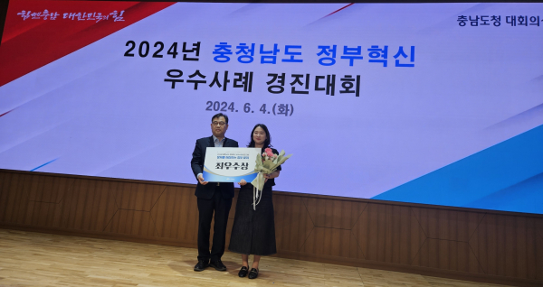 [충청뉴스 부여 = 조홍기 기자] 부여군(군수 박정현)은 지난 4일 2024년 충남 정부혁신 우수사례 경진대회에서 종합민원지적과 이다혜 주무관이 ‘농로 및 비닐하우스 도로명 주소 부여사업’으로 최우수상을 수상했다고 밝혔다.