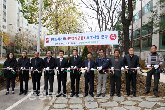 대전광역시 유성구(구청장 허태정)가 지난 8월부터 공사에 착공한 전민동 시민휴식공간 사업이 이달 끝나 12일 오전 전민동 주민자치위원회가 주관해 열린 준공식에 주민과 관계자 100여명이 참석했다.