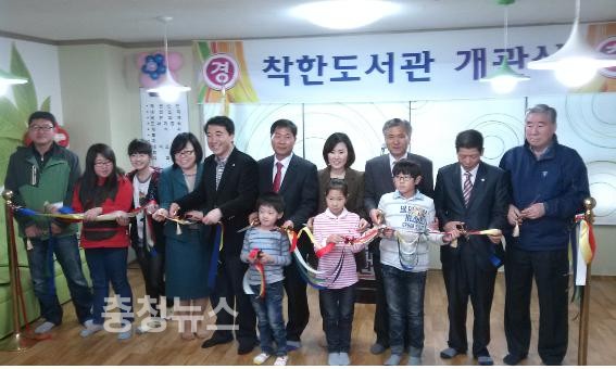 화제의 도서관은 공주시 봉황로 154번지 한국청과 3층에 위치한 ‘사립 착한 작은 도서관’(관장 김영미)으로 11일 오전 이상욱 착한작은도서관 운영위원장과 박수현 국회의원, 고광철 공주시의회 의장, 윤석우 충남도의원, 우영길 공주시의원 등 100여명의 내빈들이 참석한 가운데 개관식을 거행했다.