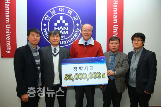 “제자들이 경제적 문제에 구애받지 않고 자유롭게 책을 사서 지식을 습득하고 연구할 수 있기를 바랍니다” 한남대학교 광·전자물리학과(학과장 이종용) 교수일동이 13일 오전 김형태 총장을 방문해 물리학 전문가를 꿈꾸는 학생들을 위한 장학금으로 써달라며 5천만원을 전달했다.