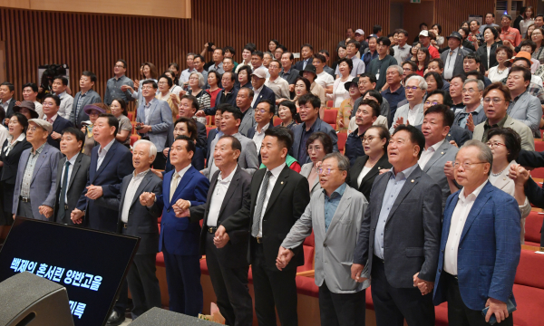 10일 오후 4시 논산아트센터 대공연장에서 열린 이날 행사에는 논산시의회 서원 의장을 비롯한 시의원과 백성현 논산시장, 각 기관 단체장, 관내 중·고등학생 등 600여명의 시민이 공연장을 가득 매웠다.
