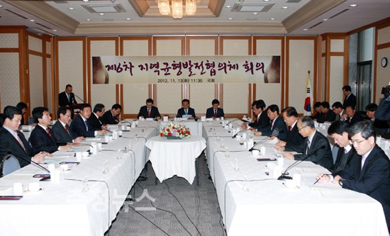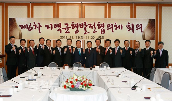 지역균형발전협의체(공동회장 경북도지사 김관용, 국회의원 이낙연)는 13일 오전, 여의도 국회 귀빈식당에서 비수도권 13개 시도지사와 지역대표 국회의원 13명이 참석한 가운데 '제6차 지역균형발전협의체 회의'를 개최했다.
