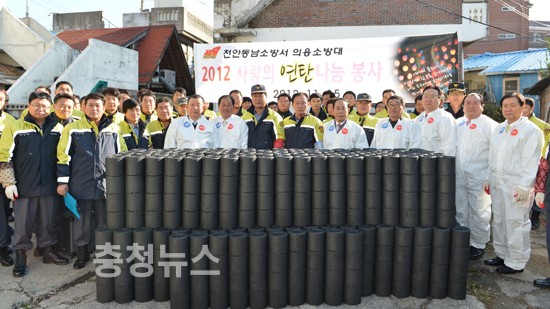 동남소방서 의용소방대는 연탄 1만장을 천안 동남구 지역의 무의탁 독거노인, 소년소녀가정 등 20가구를 선정하여 가구당 500여장을 지원하기로 뜻을 모았고 도의회 건설소방위원회 의원들이 전격적으로 동참하면서 함께 배달행사를 갖게 되었다.
