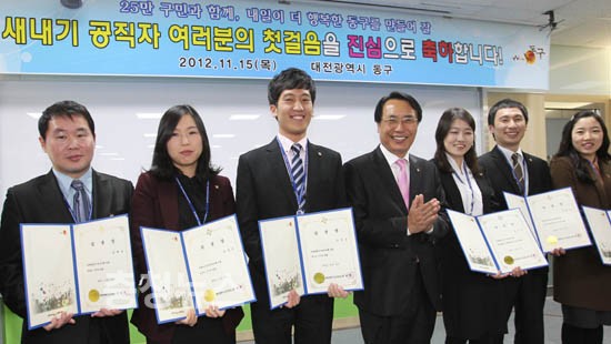 대전광역시 동구(구청장 한현택)는 15일 구청 소회의실에서 2012년 신규임용 공무원 10명에 대한 임용장 수여식을 가졌다.