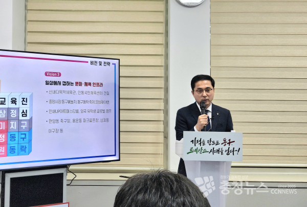 그러면서 주요 비전과 전략으로 ▲미래를 준비하는 교육진심 동구 실현 ▲기업과 인재가 유입되는 고밀도 혁신도시 ▲일상에서 접하는 문화‧체육 인프라 ▲촘촘한 돌봄으로 맞춤형 복지 실현을 제시했다.