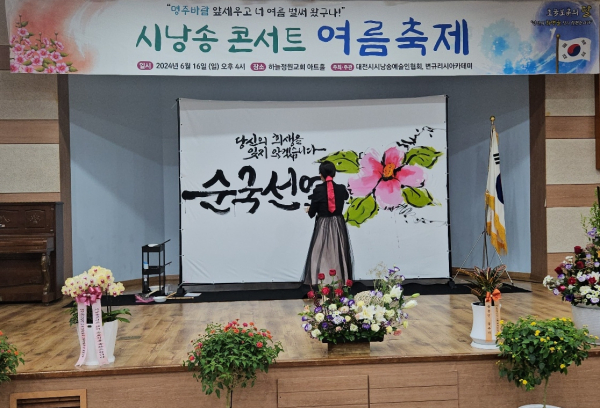 [충청뉴스 최형순 기자] 대전시낭송예술인협회(회장 변규리)는 16일 대전 유성구 은구비로에 있는 하늘정원교회 아트홀에서 호국보훈의달을 맞이하여 “시낭송 콘서트 여름축제”를 개최했다.
