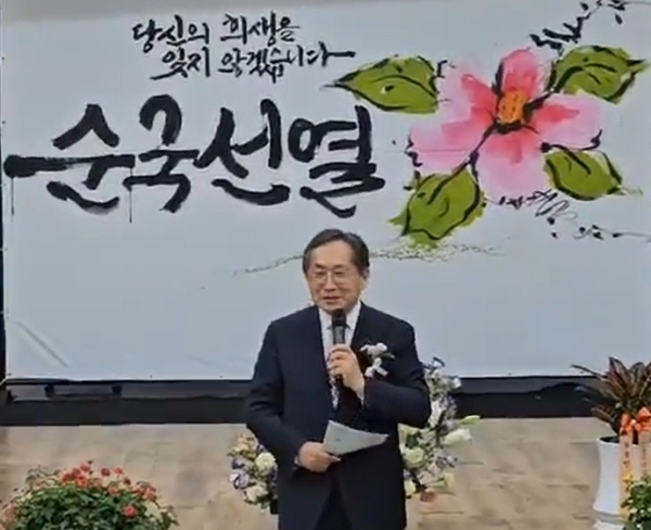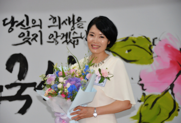 이날 식전 행사로 김순자 캘리디자인연구소 대표가 “당신의 희생을 잊지 않겠습니다. 순국선열”이라는 캘리그라피 퍼포먼스를 선보여 참석자로 부터 감동의 엄지척을 받았다.