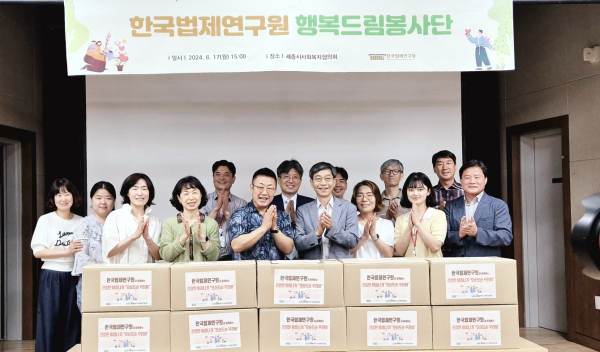 한국법제연구원 한영수 원장은 “우리 연구원이 지역사회와 함께 소통하고 어려운 이웃들에게 조금이나마 도움을 줄 수 있어서 기쁘다. 앞으로도 꾸준히 사회공헌활동을 이어가며 지역사회의 일원으로서 책임을 다할 것이다” 라고 말했다.
