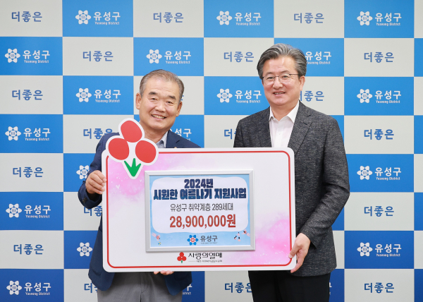 정용래 유성구청장은 “이번 후원은 단순히 경제적 지원을 넘어, 이웃 간의 따뜻한 정과 배려를 실천하는 계기가 될 것”이라며 “앞으로도 취약계층을 위한 다양한 지원 프로그램을 마련해 모든 구민이 안전하고 쾌적한 환경에서 생활할 수 있도록 최선을 다하겠다”고 말했다.
