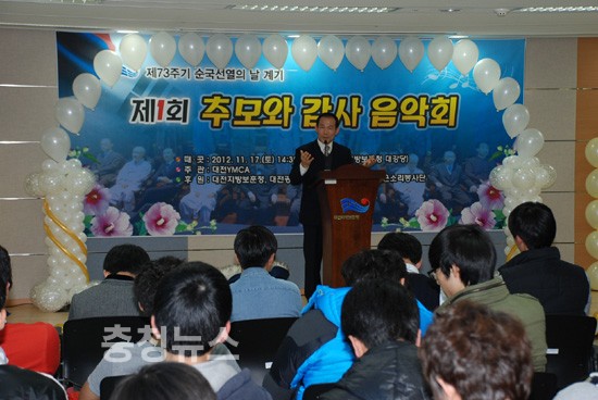 나라를 위해 희생한 순국선열의 날 제73주기를 맞아 선열들의 숭고한 나라사랑 정신을 함양하고 그 뜻을 널리 계승하기 위한 제1회 청소년 대상 추모와 감사음악회가 17일 오후 대전YMCA(총장 박장동)이 주관하고 대전지방보훈청(청장 신영교), 대전광역시청소년활동진흥센터(소장 김명수), 맑은소리봉사단(단장 노영달)이 후원하는 가운데 대전지방보훈청 대강당에서 개최됐다.