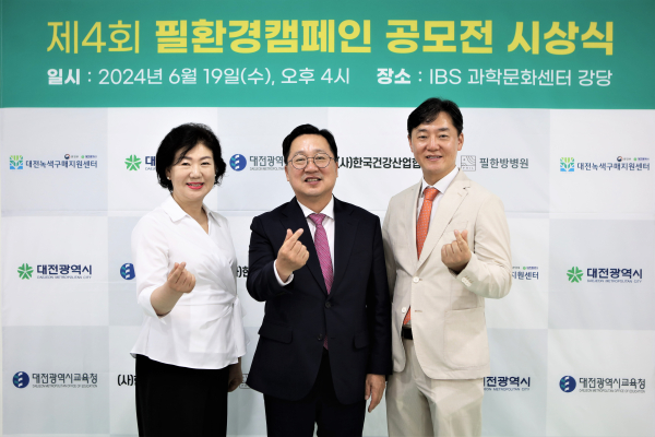 [충청뉴스 김용우 기자] 필한방병원(병원장 윤제필)이 대전녹색구매지원센터(센터장 김나영)와 함께 지난 19일 IBS 과학문화센터 강당에서 '제4회 필환경 캠페인 공모전 시상식'을 개최했다고 전했다.