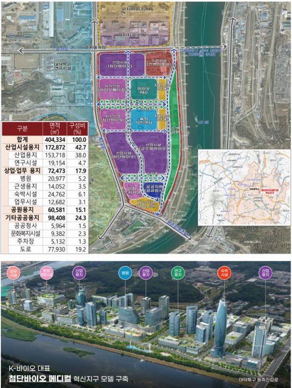 원촌 첨단바이오메디컬혁신지구는 40만 4천㎡(12만 평)로, 인프라, 인력, 기업, 연구개발(R&D) 등 대전의 혁신자원을 집적해 신약개발에 특화된 기회발전특구로 조성될 예정이다.