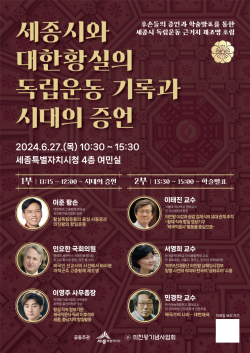이번 학술 포럼은 대한황실 후손의 증언과 학자의 연구 결과를 토대로 독립운동 근거지로서 세종시의 가치를 재조명하고, 항일운동에 이바지했으나 잘 알려지지 않은 독립운동가를 발굴하기 위해 마련됐다.