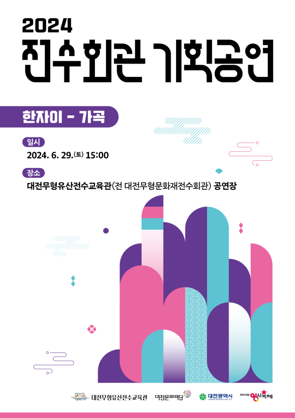 2024 전수회관 기획공연은 전수교육관 공연장 뿐만 아니라, ‘대전0시축제’가 열리는 8월 13일과 14일 원도심 일원에서도 만나볼 수 있으며, 공연에 대한 자세한 내용은 대전문화재단 누리집과 대전문화재단 전통진흥팀을 통해 확인할 수 있다.
