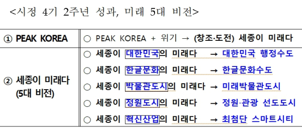 그러면서 "앞으로 계획은 첫 번째로 세종이 대한민국의 미래라고 생각하고, 두 번째로는 세종이 한글문화의 미래이며, 그리고 세종이 박물관 도시의 미래다,라는 새로운 개념으로 시정을 이끌어 가겠다"고 덧붙였다.
