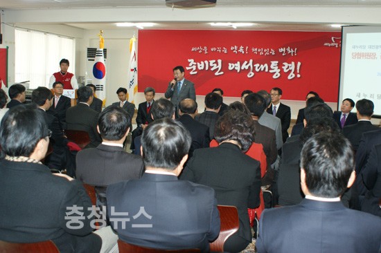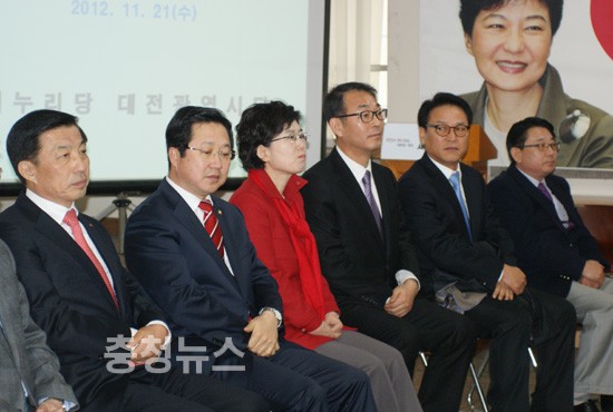이상태 의원은 "2년 6개월만에 왔다. 기분 좋고 가슴이 뭉클하다 12월 19일 18대 대통령선거에서 대전의 기초 광역의원들이 똘똘 뭉친것같다. 세계의 대통령도 만들 수 있을 것 같다 우리 열심히 해보자"고 말했다.
