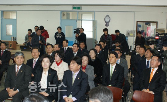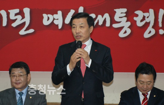 이현 당협위원장은 "처음엔 걱정도 했는데 와보니 다들 아는 분들이라 낯선 느낌은 없다. 이제 우리 막 결혼했다 가정형편이 어려운 선진당이 부잣집인 새누리당으로 시집온 것 같다. 결혼했기 때문에 어려웠던 과거얘기는 그만하고 잘 화합해서 알콩달콩 잘 살아서 옥동자를 낳아야 될 것 같다. 옥동자라는 대통령 선거에서 승리해서 우리의 결혼이 대한민국 정치사정으로 뜻있는 쾌거가 될 수 있게 최선을 다하자"고 다짐했다.
