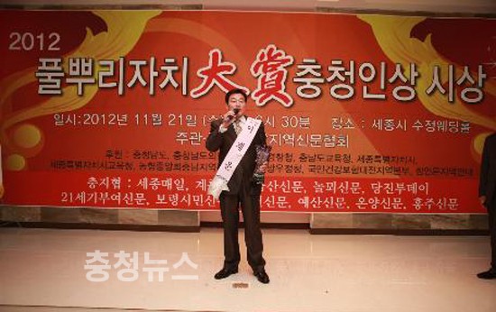 계룡시의회 이재운 의장은 지난 21일 오후 6시 세종시 수정웨딩홀에서 열린 한국지역신문 충남지역신문협회(회장 이평선) 주관 '2012년 풀뿌리자치대상 충청인상' 시상식에서 기초의원 부문 대상을 받았다.