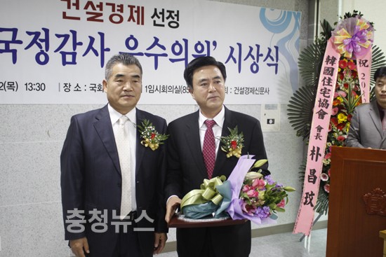 이날 시상식에는 김태흠의원을 비롯해 새누리당 이이재, 조현룡, 심재철의원 민주통합당 박기춘, 김관영, 박수현의원등 총 7명이 국정감사 우수의원 상을 받았다.