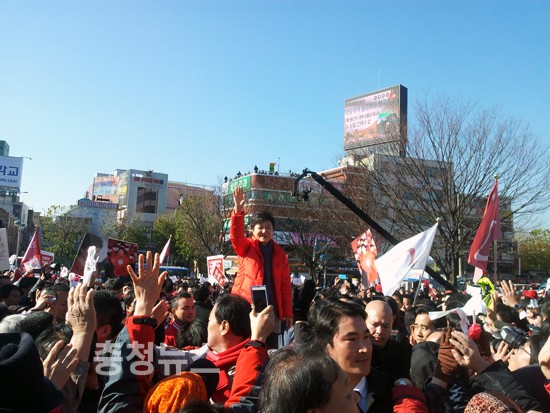 이날 대전역 광장에는 8천여명의 대전시민이 모여 박근혜 후보의 첫 유세에 뜨거운 관심을 모였다.