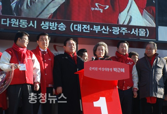 박 후보는 “대한민국의 최초 여성대통령이 된다면 우리 정치의 놀라운 쇄신과 변화가 시작될 것이라며 권력투쟁의 정치에서 민생중심의 생활중심정치로 바뀌게 될 것이다.”, “책임 있는 변화로 대한민국을 바꾸고 국민행복시대를 열겠다”고 약속했다. 이에 앞서 이회창 전 자유선진당 총재는 대전 시민들에게 박근혜 후보 지지를 호소했다.