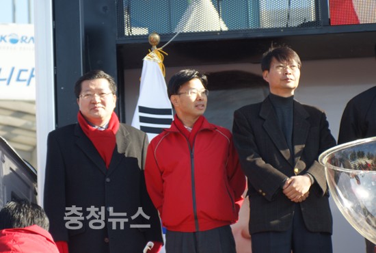 금일 이 자리에는 이종호 한국노총 대전지역본부 의장, 유남규·장윤창·김영호 전 국가대표 감독, 이회창 전 자유선진당 총재, 이완구 전 충남도지사, 이인제 중앙선대위 공동위원장, 김무성 총괄본부장, 박성효·이재선 대전공동선대위원장,이장우 중앙선대위 조직총괄부본부장, 민병주·김상민·이재영 의원이 함께했다.