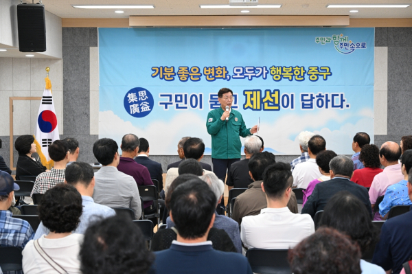 김제선 중구청장은 “구민과의 자유로운 대화를 통해 주민들의 소리를 좀 더 가까이에서 듣고 모두가 함께하는 행정을 실현할 것”이라며 “주민 행복을 최우선으로 하는 자치정부가 실현될 수 있도록 최선을 다하겠다”라고 밝혔다.