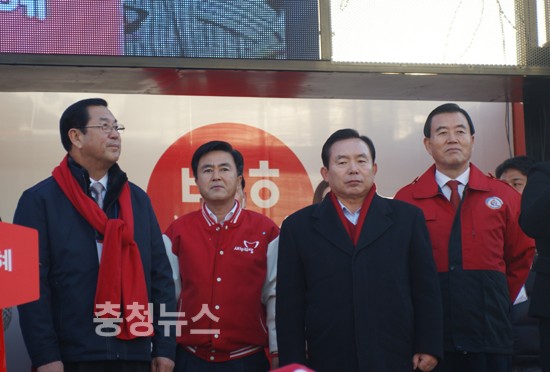 특히 박 후보의 이날 충청 방문에는 박성효, 이재선, 이장우, 홍문표, 김태흠 의원과 최근 합당한 선진통일당의 이인제 전 대표, 그리고 보수진영에 상당한 영향력을 발휘하고 있는 이회창 대표까지 지원유세에 나서 눈길을 끌었다.
