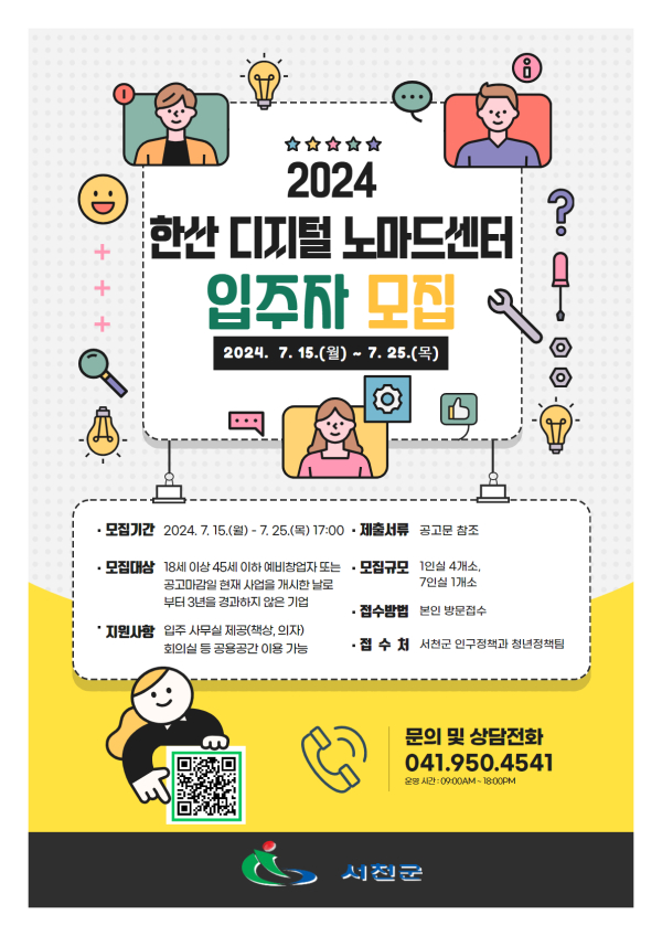 [충청뉴스 서천 = 조홍기 기자] 서천군은 청년 창업가의 자립과 안정적인 정착을 돕고자 오는 15일부터 25일까지 ‘한산 디지털 노마드센터’ 청년 창업가 입주자를 모집한다.