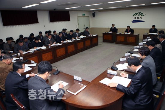 계룡시(시장 이기원)는 27일 시청 상황실에서 이기원 시장 주재로 실과장 및 면동장 등 6급 이상 간부공무원 70여 명이 참석한 가운데 12월 중 업무계획보고회를 가졌다. 이날 이기원 시장은 지난 20일 공연한 국악협회계룡지부 퓨전 국악연극 “신도안” 공연은 많은 시민들의 관심과 호응이 있었다고 말하고, 지속적인 홍보를 통해 계룡의 역사관과 미래를 제시하는 지역문화로 자리매김 할 수 있도록 노력해 줄 것을 특별히 당부했다.