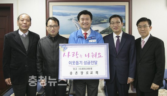 송촌장로교회(담임목사 박경배)는 28일 구청 구민의 사랑방에서 대덕구의 어려운 이웃을 위해 써 달라며 1,000만원을 전달했다.