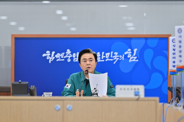 이날 김태흠 충남지사는 도청 재난종합상황실에서 호우 피해 상황 점검회의를 개최해고 “피해조사와 응급 복구를 위해 행정력을 집중투입할 것”을 주문했다.