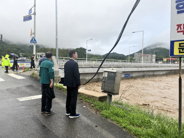 김 청장은 10일 새벽 담당부서 관계자들과 집중호우로 인한 침수 피해 지역인 침산동 일대의 주택과 도로 등의 피해 현황을 점검하고, 안영교, 보문교 등 하천 범람 위험지역을 점검하며 신속한 피해복구와 향후 대책을 강구했다.