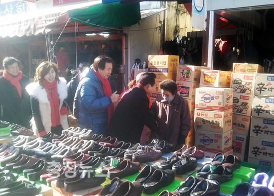새누리당 이인제 공동선대위원장은 29일 세종시 조치원읍 시장을 방문해 세종시민들에게 박근혜 대통령 후보의 당선을 호소했다.