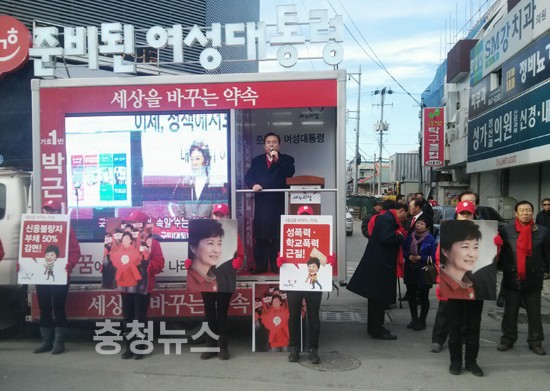 이어 이인제 공동선대위원장은 연설을 통해 "충청도 발전은 충청의 피가 반이 섞여 있는 박근혜 후보만이 해 낼 수 있다"며 "우리가 하나 되어 충청도와 세종시를 발전시켜야 된다"고 했다.